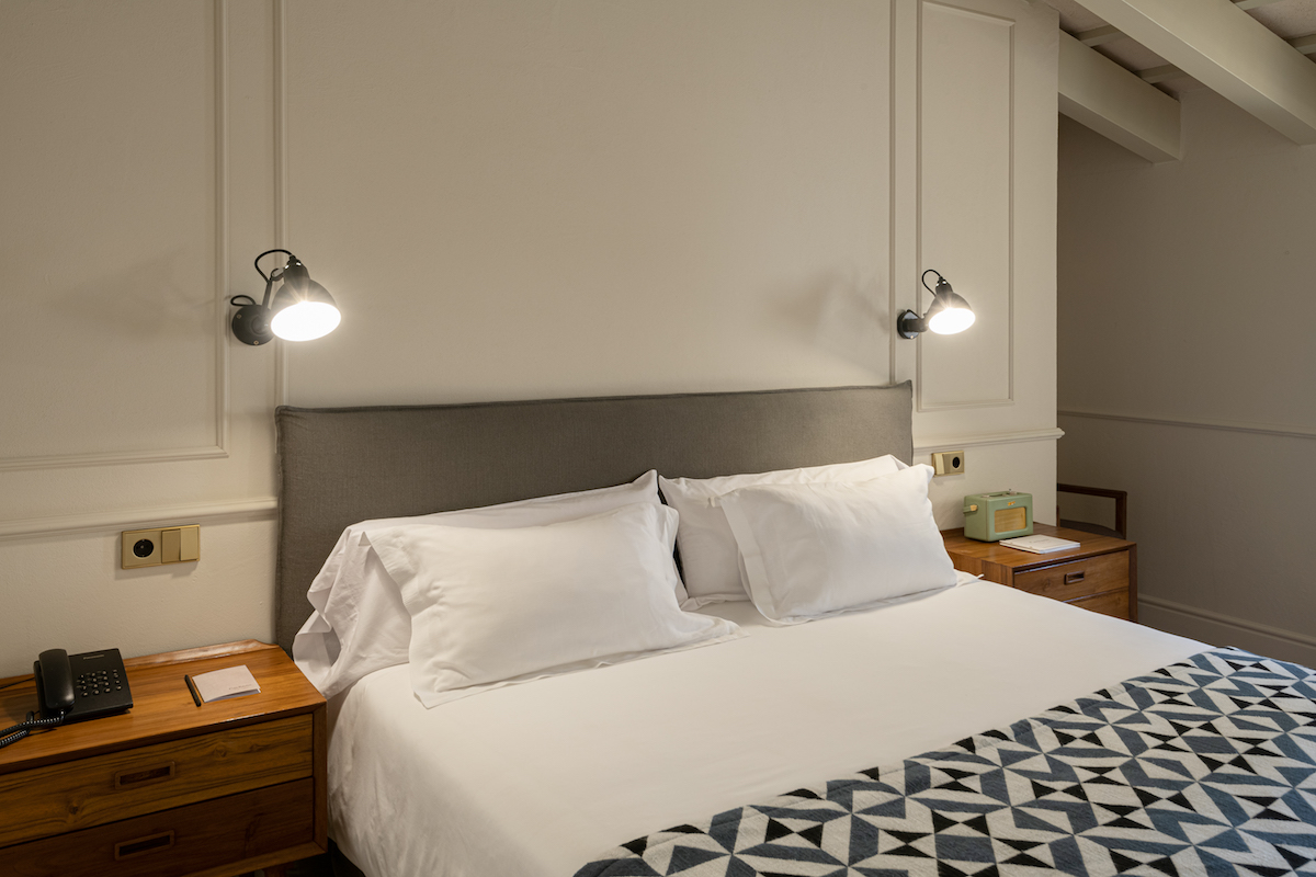 Se han restaurado las vigas y se han dejado a la vista, como estaban originalmente. Con bañera y baño independiente y la decoración armoniosa, forman en su conjunto una estancia ideal para sumergirse en un ambiente elegante y relajado.